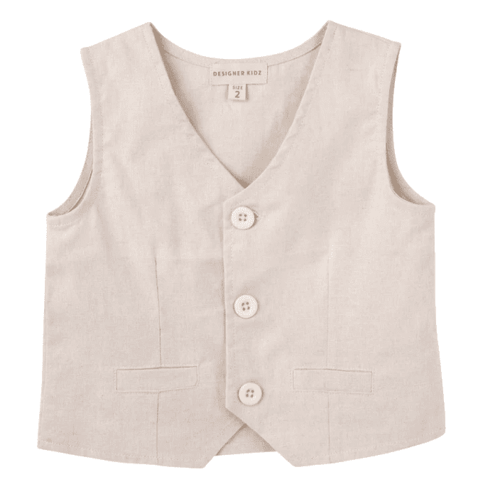 A dapper vest for your pint-sized prince! The Finley Linen Vest features a tailored with front button detailing. Perfect for suiting up your little trendy man.